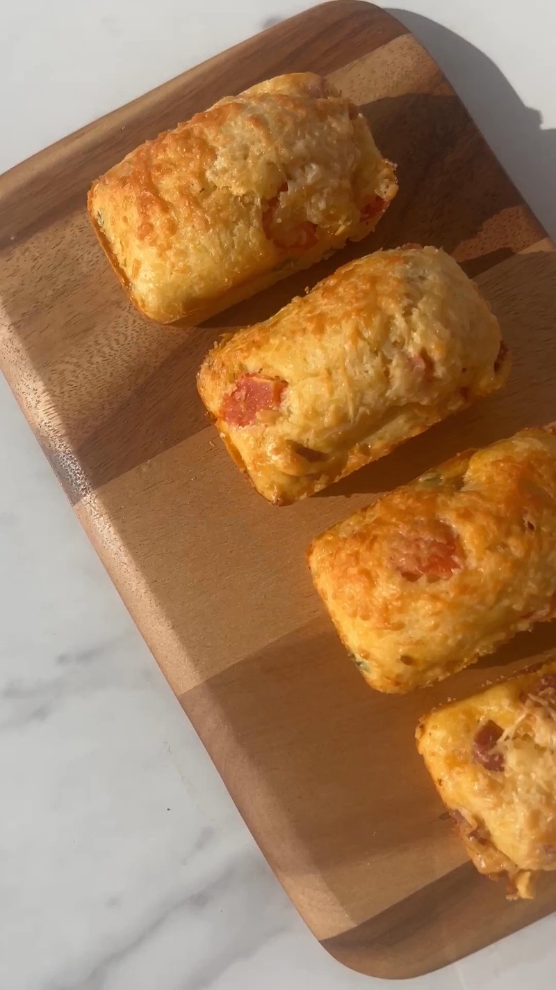 These Cheese, Tomato and Chorizo Savoury Mini Loaves are a great snack or light meal, featuring mozzarella, salami, cherry tomatoes, and basil, all baked into a fluffy, golden loaf.